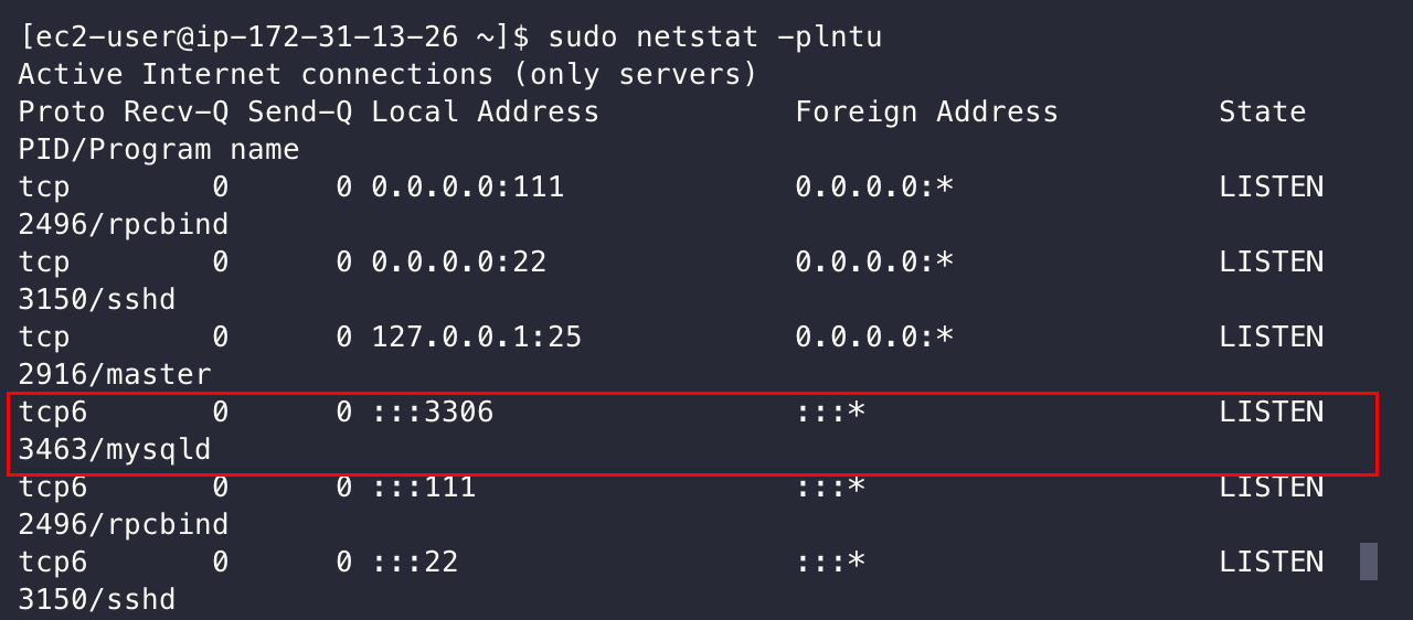 3306 포트가 떠있다면 정상적으로 실행되고 있다는 의미입니다.