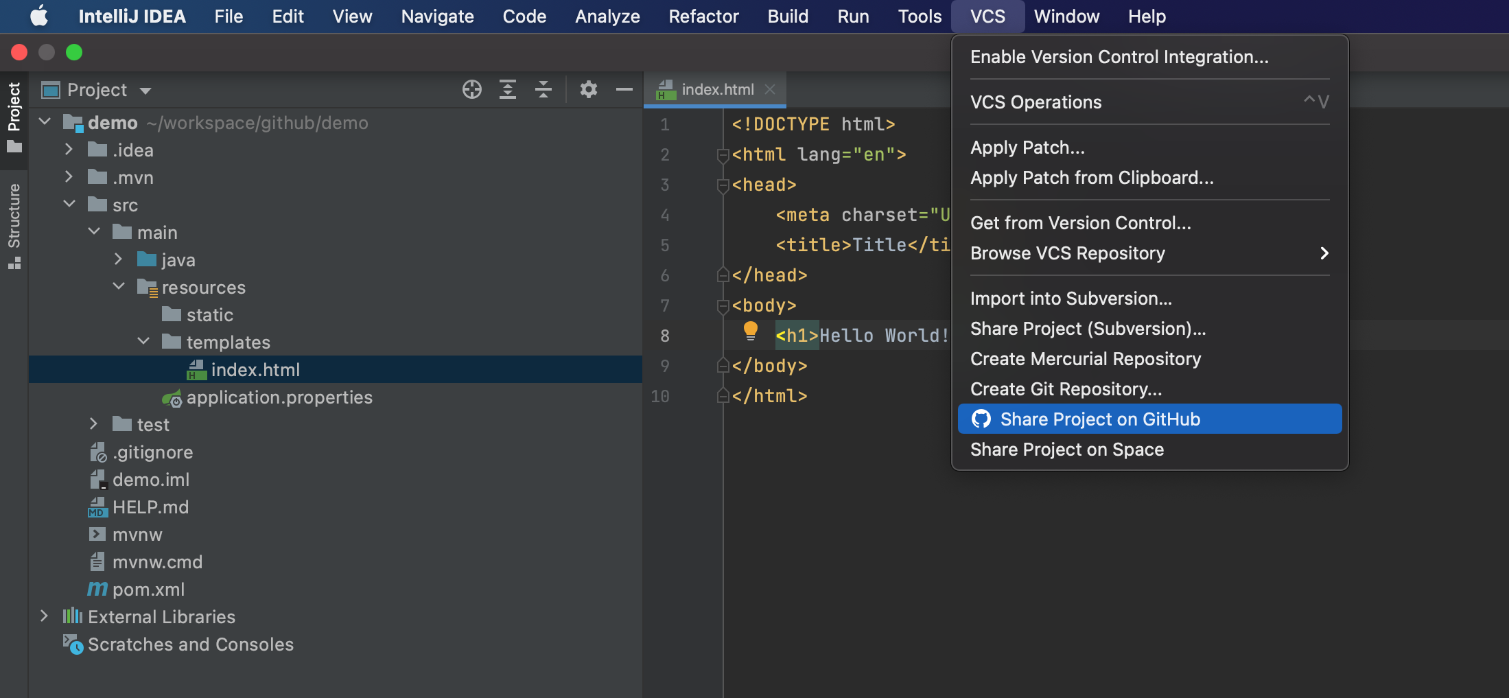 1. 깃허브 저장소를 만든 후 Spring Boot 프로젝트 연동하기