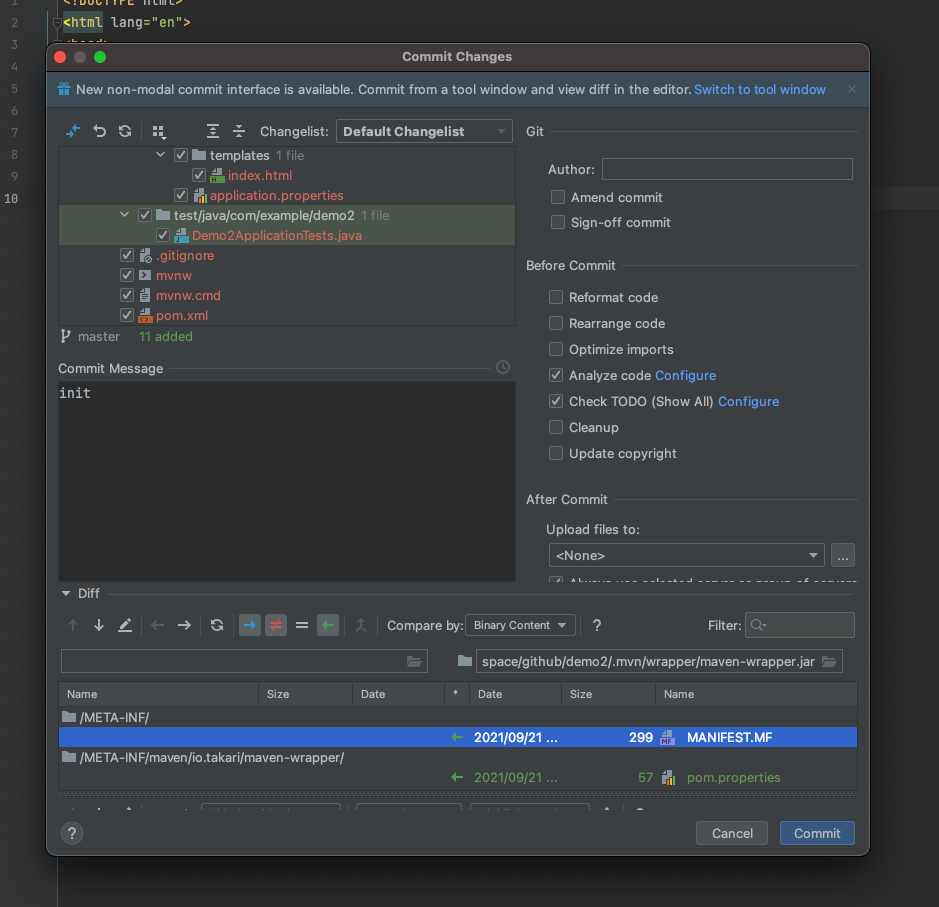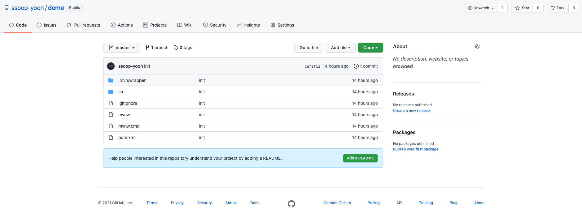 깃허브로 들어가시면 2번에 Repository name으로 만든 저장소가 생기고 Spring Boot 파일들까지 올라간것을 확인 할 수 있습니다.
