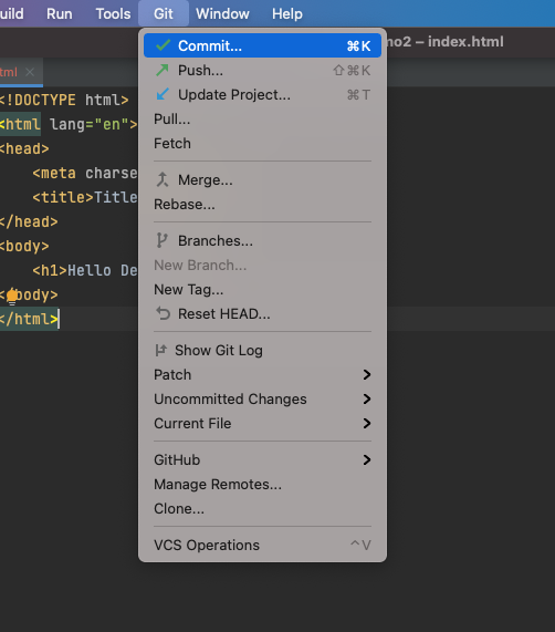 상단바에 있는 Git를 누르고 Commit를 클릭합니다.