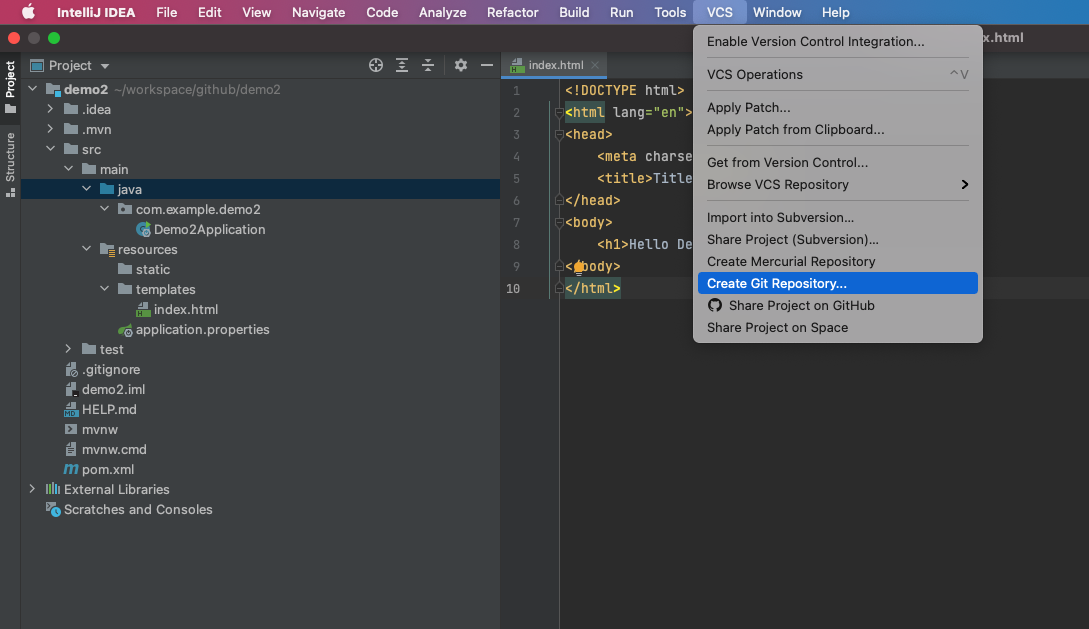 - Spring Boot 프로젝트를 만든 후 IntelliJ 에서 깃허브 저장소 생성하고 연동