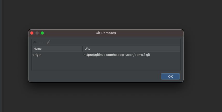 Git Remote 설정이 완료되었다면 OK 버튼을 클릭합니다.